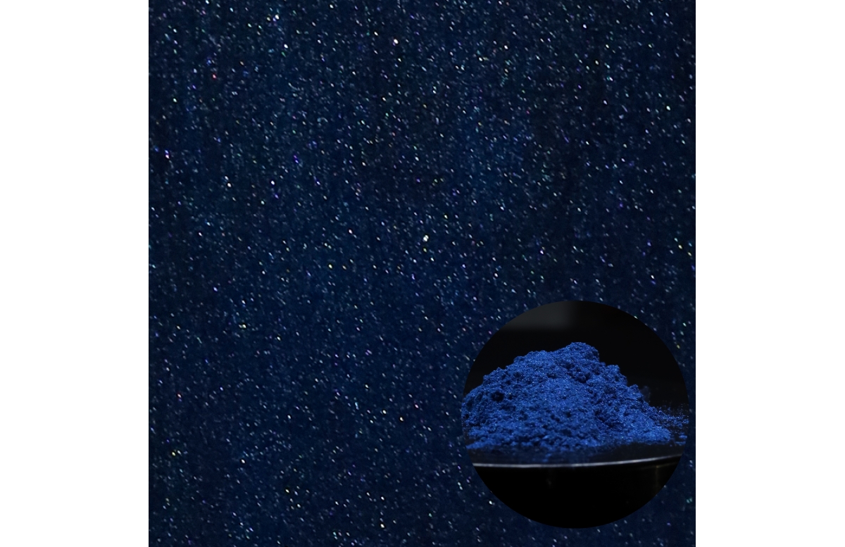 Пігмент перламутровий KW 426 10-60 темно-синій − перламутровий пігмент на основі природної слюди з багатошаровим покриттям оксиду титану та оксиду олова. Формує глибокий темно-синій перламутровий ефект із холодною світловою грою та вираженим інтерференційним переливом, що змінюється залежно від кута освітлення. Середня фракція частинок забезпечує стабільний оптичний ефект і рівномірний розподіл пігменту у прозорих та напівпрозорих системах. Пігмент сумісний з різними типами зв’язуючих систем, легко диспергується, характеризується високою світлостійкістю, хімічною та термічною стабільністю. Не мігрує, не вицвітає, не токсичний, не проводить електричний струм, не займистий та безпечний для навколишнього середовища.