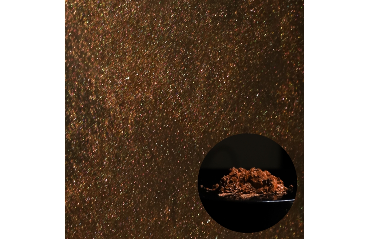 Пігмент перламутровий KW 502 10-60 мідь − перламутровий пігмент на основі природної слюди з покриттям оксиду титану та оксиду заліза. Формує насичений мідний перламутровий ефект із теплою світловою грою, виразним металевим блиском та стабільним кольоровим тоном без різкої кутозалежної зміни відтінку. Середня фракція частинок забезпечує рівномірний декоративний ефект і добру однорідність у прозорих та напівпрозорих системах. Пігмент сумісний з різними типами зв’язуючих систем, легко диспергується, має високі показники світлостійкості, хімічної та термічної стабільності. Не мігрує, не вицвітає, не токсичний, не проводить електричний струм, не займистий та безпечний для навколишнього середовища.